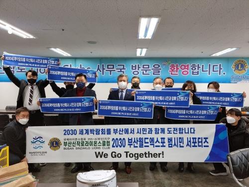2030부산월드엑스포범시민서포터즈는 19일 부산신작로라이온스클럽에서 2030부산세계박람회의 성공 유치를 기원하는 ‘We go together!’ 협약식을 했다.