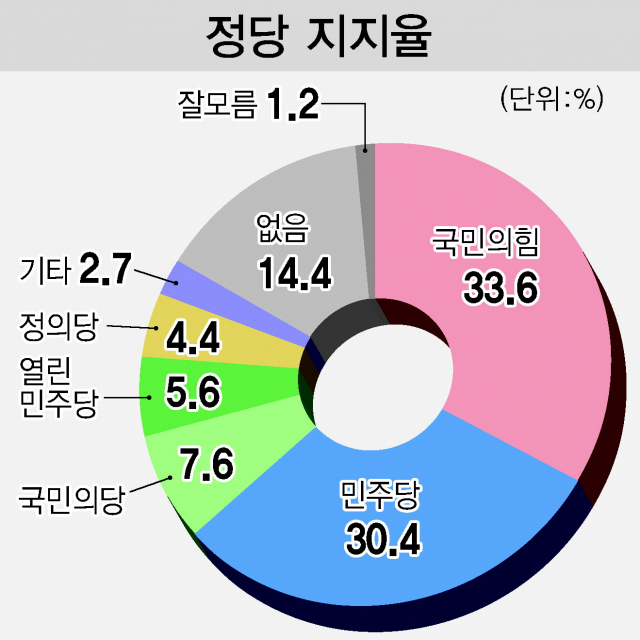 국힘 33.6% → 1.7%P 하락