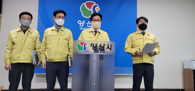 양산시는 25일 오후 프레스센터에서 긴급 기자회견을 갖고 “이날 오전 10시 기준으로 코로나 확진자가 178명이 발생했고, 오후 확진자까지 포함하면 200명이 넘어설 것으로 보이는 등 초유의 상황”이라며 “철저한 방역수칙을 지켜줄 것을 다시 한번 당부한다”고 밝혔다. 김태권 기자