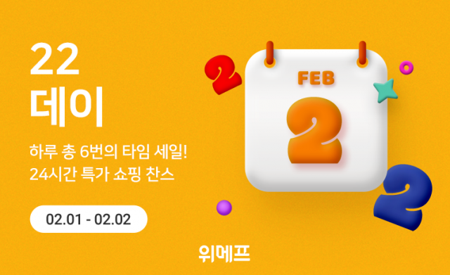 △위메프는 내달 1~6일 '22데이&위메프데이'를 진행한다. 행사 기간 대대적인 특가 행사와 최대 5만 포인트 지급 이벤트를 연다. 2월 1~2일 진행하는 22데이에서는 숫자 '2'를 활용, 상품 가격 끝자리가 22원인 특가 상품을 판매한다. 양일간 0시부터 하루 6번에 걸쳐 혜택을 강화한 타임세일도 운영한다. 이어 2월 3~6일에는 '위메프데이'를 연다. 4일간 디지털·가전, 패션·뷰티, 리빙·가구·E쿠폰, 푸드, 유아동 카테고리 인기 아이템을 큐레이션한다. △싸이클론 유선 진공 청소기 △코몽트 기모 반목티셔츠 △로이첸언폴드 체어 △하기스 보송보송 팬티 등을 대표 상품으로 선보인다. 마트 장보기 상품을 큐레이션한 '위메프마트'도 열린다. 생활주방관, 즉석·가공식품관, 신선식품관, 가전·가구관 등 마트 주요 품목을 그대로 옮겨왔다. 모든 고객에게는 장보기 전용 쿠폰을 지급한다. 구매 금액에 따라 최대 20% 할인 쿠폰을 받을 수 있다. 행사 기간 포인트 적립 이벤트를 열고 추첨을 통해 최대 5만 포인트를 지급한다. 적립된 포인트는 위메프에서 쇼핑 시 현금처럼 사용할 수 있다.