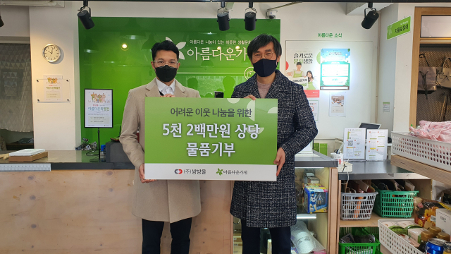 △국내 홈&언더웨어 전문기업 쌍방울이 임인년 새해를 맞아 약 5200만 원 상당의 자사 제품을 28일 비영리공익재단 아름다운가게에 전달했다. 이번 기부식에는 김세호 쌍방울 대표와 윤여영 아름다운가게 상임이사가 참석해 자리를 빛냈다. 쌍방울은 이번 행사를 위해 자사 제품 남성·여성·소아 언더웨어 약 2만 점을 전달했다. 전달된 쌍방울 제품은 28일부터 아름다운가게 안국점, 강서화곡점, 안양점, 수원행궁점, 일산주엽점, 전주송천점, 정읍수성점, 부산명륜역점, 제주신제주점 등 전국 9개 매장에서 동시에 아름다운특별전 행사를 통해 판매된다. 행사를 통해 발생된 수익금은 아름다운가게의 '아름다운 희망나누기 사업'을 통해 지역사회 공동체 기반의 기후 위기 대응 활동 사업에 활용 될 예정이다. 기후위기로 어려움을 겪는 사각지대의 문제를 해결하고 취약계층을 보호해 '지속가능한 지역사회'를 형성하는 것이 목적이다.