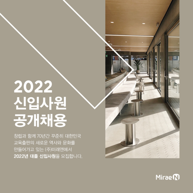 △교육출판전문기업 (주)미래엔이 오는 2월 8일까지 2022년 신입사원을 공개 채용한다. 채용 분야는 ▲교육개발(국어, 사회, 과학) ▲디자인 ▲구매 부문이다. 지원 자격은 국내·외 4년제 대학교 학사 학위 이상 소지자로서 기졸업자·2022년 2월 졸업예정자이면서 2022년 4월에 입사 가능한 자다. 교육개발·디자인 부문은 과목별 전공자에 한해 지원할 수 있다. 입사 지원은 오는 2월 8일까지 미래엔 홈페이지 온라인 접수를 통해 가능하다. 채용 절차는 서류 전형을 시작으로 인적성검사 및 필기시험, 1·2차 면접, 건강검진을 거쳐 최종 발표된다. 각 부문별 주요 업무 및 세부 지원 자격은 미래엔 홈페이지와 채용 사이트 '사람인'에서 확인할 수 있다. 미래엔은 창립과 함께 70년 이상 꾸준히 대한민국 교육출판의 새로운 역사와 문화를 만들어가고 있는 기업이다. 업계에서 주목할 만한 다양한 복지 제도를 시행하며 유연한 조직 문화를 조성하고자 노력하고 있다. 2019년부터 시차출근제를 통해 효율적인 근무 환경을 조성해오고 있으며 코로나가 본격화된 2020년 3월 교육 업계 최초로 재택근무제를 도입하기도 했다. 또 ▲춘계휴가 ▲힐링휴가 ▲장기근속휴가 등 다양한 휴가 제도를 마련해 일과 쉼의 조화를 이루는 기업문화를 장려하고 있다. 지난해 말에는 여성가족부로부터 '2021 가족친화기업'으로 선정된 바 있다.