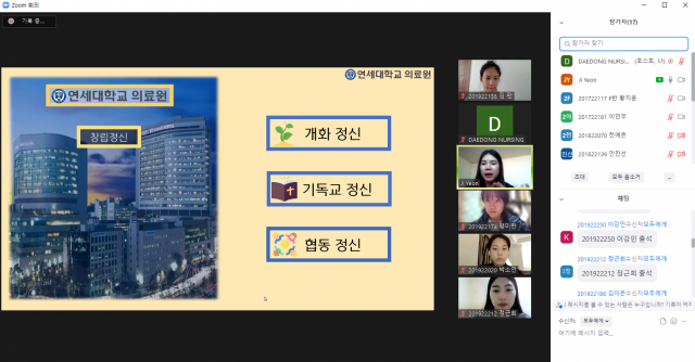 이번 프로그램은 COVID-19 확산방지를 위하여 온텍트(비대면)으로 진행되었으며, 분당서울대학교병원, 서울아산병원, 강남세브란스병원에 현재 근무하는 멘토(졸업생)들은 각 병원에 대한 소개 및 근무환경, 복지 등에 대한 설명을 하였고, 참여한 재학생들은 학습 노하우, 취업을 위한 정보에 대해 질의를 하는 등 선후배 간의 상호작용을 하는 시간을 가졌다.