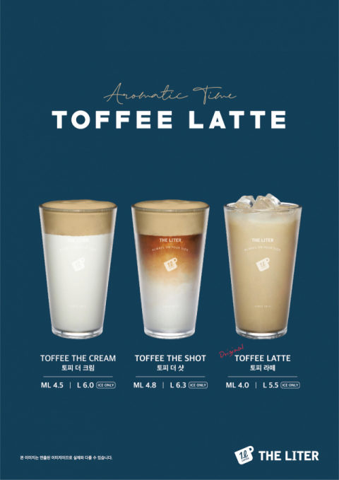 더리터는 국내 최초 전메뉴 1리터 대용량의 커피와 음료를 서비스하는 커피 프랜차이즈로서, 이번 신메뉴인 토피 음료 3종도 대용량인 리터 사이즈로 만날 수 있다.