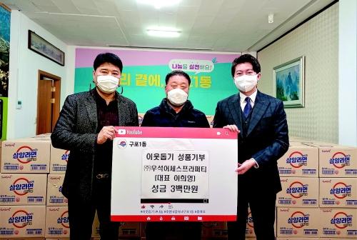 (주)우석어세스프라퍼티(대표 이희영)는 지난 8일 어려운 이웃을 위해 부산 북구 구포1동 행정복지센터(동장 제환영)에 이웃돕기 성금 300만 원을 기탁했다.