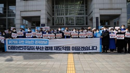 국민의힘 부산선대위도 같은 날 오전 부산 민주공원 계단에서 ‘부산 시민께 드리는 글’을 통해 대선 승리를 위한 결의를 다졌다. 국힘은 부산에서 60% 이상 득표를 목표하지만, 후보의 외연 확장이 한계를 보인다는 평가를 받는다. 국힘 부산선대위는 현 정부의 코로나19 방역, 부동산 정책, 조국 사태 등을 지적하며 정권 교체를 외쳤다. 선대위는 “집 가진 사람은 세금 걱정, 집 없는 사람은 내 집 마련 걱정을 하는 등 걱정공화국이 돼 버렸다”면서 “부산의 미래를 제시하는 대통령이 탄생할 수 있도록 마음을 모아 달라”고 말했다.