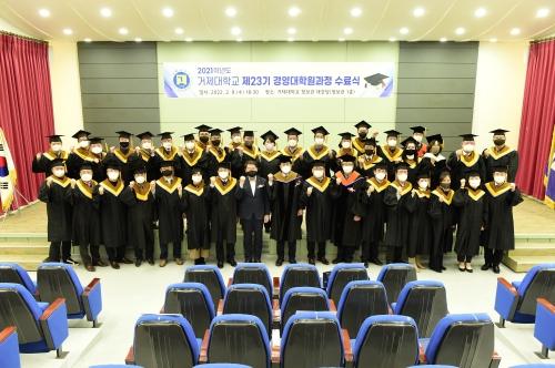 거제대학교(총장 조욱성)는 최근 정보관 대강당(긍지홀)에서 경영대학원과정의 23기 59명에 대한 수료식을 개최했다.