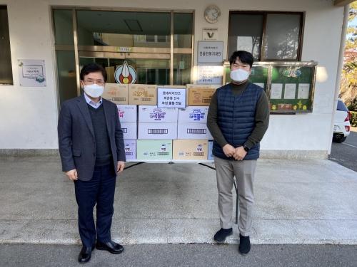 최준용이 지난 15일 부산 동래구 한 아동복지시설에 유아용 간식 등을 기부했다(왼쪽). 한동희는 지난 4일 부산연탄은행에 연탄을 기부했다. 유니버스 스포츠 매니지먼트·롯데 자이언츠 제공한국프로야구 롯데 자이언츠 투수 최준용과 내야수 한동희가 이웃들을 위한 따뜻한 선행을 베풀어 관심을 모으고 있다.