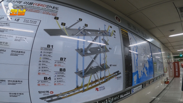 2022년 현재 대한민국에서 가장 깊은 곳에 자리 잡은 지하철역은 만덕역이다. 잠깐 복습해보자면 깊이는 64.25m. 아파트 23층 높이만큼 깊다. 개찰구를 통과해 승강장까지 가려면 엘리베이터를 타야 하는데, 무려 지하 9층까지 내려가야 한다. 전국 1등이다. 배산역은 만덕역에 조금 못 미친다, 심도 55.2m. 깊긴 하지만 우리는 이미 만덕역을 다녀와 감흥이 적다.
