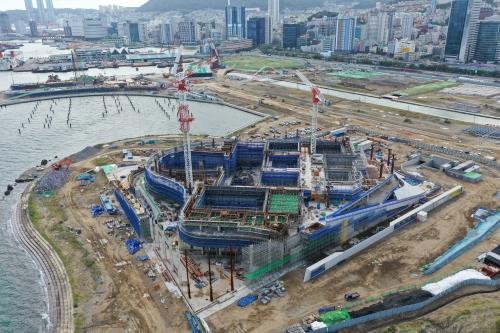 부산항 북항재개발 지역의 부산오페라하우스 공사 현장. 부산일보DB부산오페라하우스와 부산국제아트센터의 무대분야 기술지원을 담당하는 부산시 임기제 공무원 채용과 관련해 (사)무대예술전문인협회가 반발하고 나섰다.