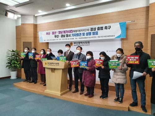 한편 이날 부산과 경남 시민단체들은 부울경 특별연합의 정상 출범을 촉구하고 나섰다. 늦어도 3월 초 특별연합 출범을 위한 규약안을 확정 짓고 6월 지방선거 전에 출범이 가능하도록 3개 시·도와 시·도의회가 적극 나서야 한다는 취지다. 지방분권균형발전 부산시민연대와 경남시민사회단체연대회의는 22일 오후 부산시의회에서 기자회견을 갖고 “올해 상반기 중 (부울경 특별연합을) 출범한다는 3개 시·도의 약속은 반드시 지켜져야 한다”고 촉구했다. 김영한 기자 kim01@