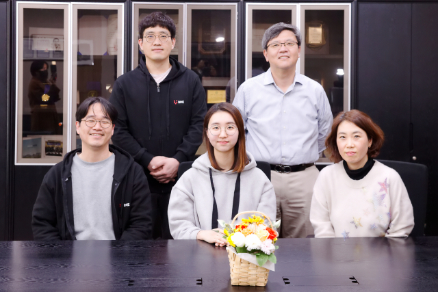 IBS 연구진. 우측 상단부터 반시계방향으로 명경재 단장(교신저자), 조승우 교수(교신저자), 권태준 교수(제1저자, 교신저자), 이소영 학생연구원(제1저자), 라재선 연구기술원(제1저자). IBS 제공