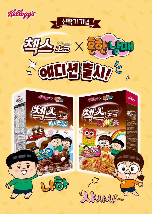 △농심켈로그의 대표적인 초콜릿맛 시리얼 브랜드 첵스초코와 1위 키즈 인플루언서 흔한남매가 손잡고 '첵스초코x흔한남매' 신학기 기획팩 2종을 한정 출시한다. 흔한남매 캐릭터들이 각각 선택한 '첵스초코 레인보우'와 '첵스초코 마시멜로'다. 에이미가 선택한 첵스초코 레인보우는 몸에 좋은 5가지 곡물로 만들어진 알록달록 레인보우 첵스초코를 베이스에 유크림을 코팅해 더욱 부드럽고 달콤한 화이트 크림맛이 특징이다. 으뜸이가 선택한 첵스초코 마시멜로는 진한 초콜릿맛의 첵스초코에 딸기, 바닐라 2가지 마시멜로가 더해져 바삭바삭한 식감으로 먹는 즐거움을 선사한다. 한정판 패키지는 첵스초코 마스코트 '체키'와 흔한남매의 친근하고 귀여운 매력을 한껏 살린 디자인으로 어린이 팬들의 흥미를 불러 일으킨다. 패키지 뒷면에는 신학기 테마로 선보이는 틀린 그림 찾기와 학교를 찾아가는 길 찾기 게임 등 각 재미 요소까지 더했다. 협업 기념으로 유튜브 흔한남매 채널에서는 레인보우와 마시멜로를 각각 응원하는 흔한남매의 재미있는 스토리를 공개하고, 흔한남매를 직접 만날 수 있는 오프라인 팬미팅도 실시할 계획이다. 흔한남매 기획팩을 두 팩 구매하면 흔한남매가 그려진 연필세트 혹은 마술세트를 증정한다.