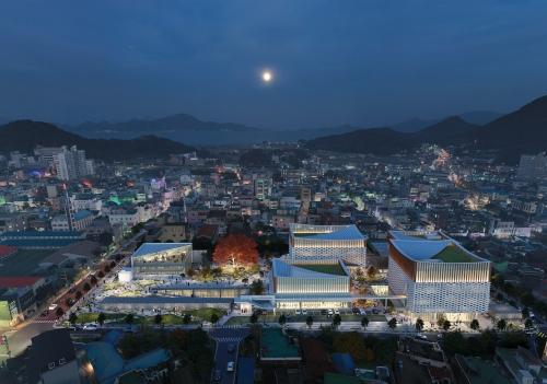 남해군 신청사 설계 공모 당선작 ‘남해로 5시다’ 야간 조감도. 남해군 제공경남 남해군의 최대 숙원인 군청사 신축 과정에 군민 의견을 최대한 담는다.