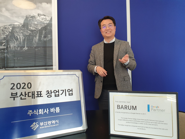 2013년 데이터 기반 병원 전략 컨설팅 기업으로 창업한 바름은 2017년 구글 공식 파트너사가 되면서 컨설팅 대상 영역을 일반 기업으로 자연스럽게 확장했다. 바름 장진훈(45·사진) 대표는 “2017년 당시 48번째로 구글의 인증을 통과한 파트너사가 됐고 지방 업체 중에서는 유일했다”면서 “전국 광고 마케팅 회사가 1만 개 쯤 있는데 그 중 48번째가 된 셈이라 의미가 크다”고 말했다.