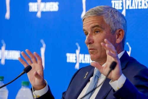 PGA투어 제이 모너핸 커미셔너가 8일 필 미컬슨의 PGA 복귀 가능성을 언급했다. EPA연합뉴스미국프로골프(PGA) 투어를 ‘탐욕적인 집단’이라며 노골적으로 비난해 골프 팬들의 큰 반발을 산 필 미컬슨(미국)의 PGA 복귀를 위한 탈출구가 마련될 조짐이다.
