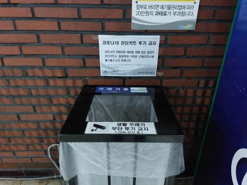 ‘코로나19 감염 예방을 위해 양성 결과의 진단키트는 밀봉해 가까운 선별진료소에 폐기해 주시기 바랍니다.’