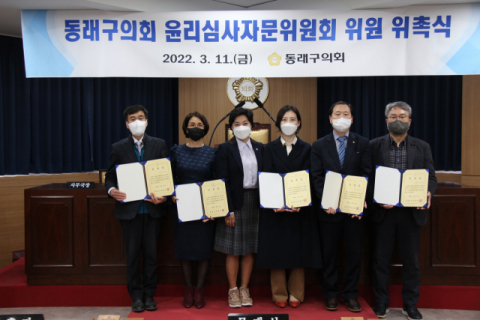 동래구의회(의장 주순희)는 11일 본회의장에서 윤리심사자문위원회 위원에 대해 위촉식을 개최했다고 밝혔다.