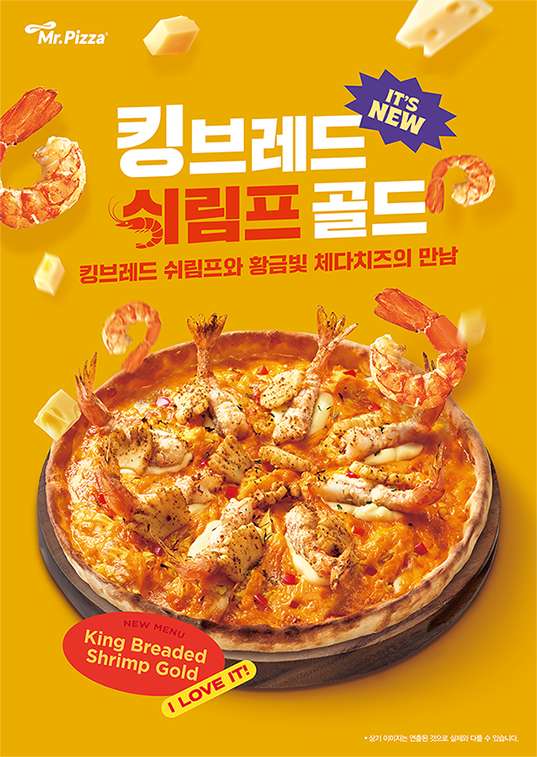 △미스터피자가 새로운 개념의 새우 토핑인 '브레드 쉬림프'와 다양한 치즈의 컬래버레이션이 매력적인 신제품 '킹 브레드 쉬림프 골드'를 출시했다. 미스터피자에서 처음으로 선보이는 새로운 형태의 새우 토핑인 브레드 쉬림프와 오징어로 해산물의 깊은 맛을 담았다. 여기에 체다, 크림치즈 등으로 고소한 풍미까지 더한 프리미엄 메뉴다. 메인 토핑인 브레드 쉬림프는 새우에 빵가루를 입혀 맛과 식감을 한층 업그레이드 시켰다. 기존 피자의 메인 토핑으로 자주 사용됐던 일반 새우 토핑과 차별화를 둬 눈길을 끈다. 미스터피자의 온오프라인 전 채널에서 구매 가능하다.