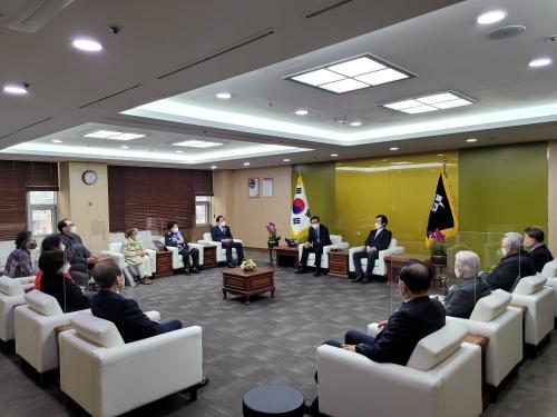 부산시문화상수상자회(회장 도용복)는 22일 부산시청 회의실에서 박형준 시장과 간담회를 열고 지역문화예술 발전 방안을 논의했다.
