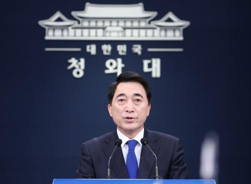 한국은행 총재 후보를 발표하는 박수현 청와대 국민소통수석. 연합뉴스문재인 대통령과 윤석열 대통령 당선인이 대선 이후에도 계속 대치하는 가운데 문 대통령이 23일 차기 한국은행 총재에 대한 인사를 단행했다.