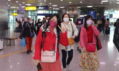 25일 KTX를 타고 부산역에 도착한 싱가포르 단체 관광객들이 역사를 나서고 있다. 오미크론 확산 후 처음으로 부산을 찾은 외국인 관광객들로 2박 3일 동안 관광을 즐기고 인천공항을 통해 귀국했다. 이재찬 기자 chan@