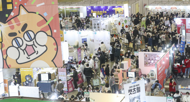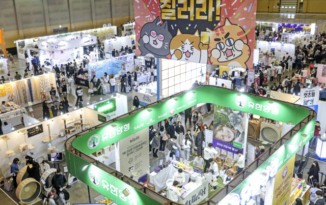 국내를 대표하는 고양이 전문 박람회 '궁디팡팡캣페스타'가 진행중인 27일 오후 부산 해운대구 벡스코에서 관람객들로 전시장이 붐비고 있다. 이번 행사는 27일까지 사흘간 벡스코 제1전시장에서 열리며 고양이 관련 용품 업체가 참가해 각종 고양이 용품과 가구, 사료, 간식, 악세사리 등을 선보인다.