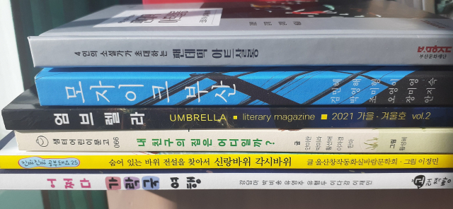 최근 제2호가 나온 〈엄브렐라〉는 반연간 문학잡지다. 발행인 겸 주간을 맡은 송진 시인은 “엄브렐라는 두루 포괄한다는 속뜻을 지녔다”고 했다. 부산과 전국 곳곳 시인들의 작품, 독자들의 시와 산문, 시집과 소설집을 낸 이들에 대한 탐방을 두루 아우르며, 지역서점과 문인 초대행사도 여는 ‘새로운 잡지’ 형식을 지향한다.