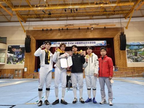 부산외대 펜싱팀은 지난 22일 충북 제천에서 열린 ‘제51회 회장배 남·녀 종별 펜싱선수권대회(펜싱선수권대회)’에서 플뢰레 대학부 단체전 우승을 차지했다.