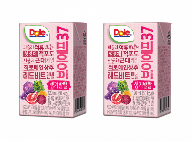 △세계적인 청과 브랜드 돌(Dole)코리아가 37가지의 신선한 레드채소와 과일을 블렌딩해 과채 고유의 맛과 영양을 균형 있게 담아낸 주스 'VF37 생기발랄'을 출시했다. 레드비트, 펜넬, 적포도, 석류 등 평소 쉽게 접하기 어려운 37가지 프리미엄 채소와 과일을 돌(Dole)사만의 주스 블렌딩 노하우로 담아내 과일 본연의 맛과 영양을 균형 있게 담아낸 점이 특징이다. 합성향료나 색소를 일절 넣지 않고 100% 농축액만을 담아 바로 갈아낸 듯한 신선함과 깊고 진한 풍미를 느낄 수 있다. 제품 1팩(120mL)에는 복숭아 약 1개 분량인 1400mg의 식이섬유가 함유돼 평소 바쁜 일상생활로 놓치기 쉬운 식이섬유를 간편하게 섭취할 수 있는 장점도 갖췄다. 한 손에 쏙 들어오는 120mL 용량의 핸디사이즈로 휴대가 용이해 간편하게 섭취할 수 있다. SIG 콤비블록사의 무균포장 기술로 안전하게 제작돼 상온에서도 장시간 안전하게 보관이 가능한 것이 장점이다. 돌코리아 직영몰 등 온라인 채널에서 만나볼 수 있다.