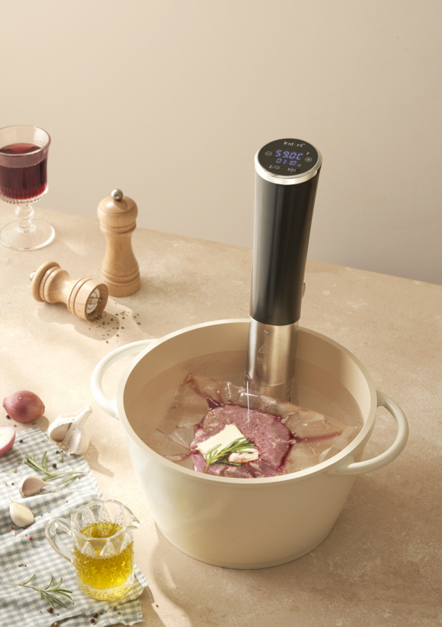 △글로벌 소형가전 브랜드 '인스턴트 브랜드'가 최고급 레스토랑의 수비드 요리를 가정에서도 손쉽게 완성할 수 있는 '인스턴트 아큐 슬림 수비드 머신'을 선보인다. 자체펌프 시스템으로 물을 일정하게 순환시켜 온도를 균일하게 유지하고 오버 쿠킹을 방지해 재료 본연의 맛을 살려주며 겉과 속이 고르게 익어 더 부드럽고 풍부한 맛을 더해준다. 온도는 20°C에서 95°C까지 정밀한 설정이 가능하며, 조리시간은 최대 72시까지 설정 가능해 다양한 식재료를 활용해 최고의 레시피를 완성할 수 있는 것이 특징이다. IPX7 등급의 완벽한 방수 기능으로 물 속에서도 안전하게 사용할 수 있다. 물에서 제품을 꺼낼 때 자동으로 동작을 중지해주는 '안전모드' 기능이 탑재돼 안정성을 높였다. 후면 집게를 이용하면 어느 용기에나 쉽게 고정할 수 있어 장시간 안정적인 조리가 가능하다. 터치 스크린의 LED 상태 표시 창으로 온도와 시간, 조리 상태까지 쉽게 확인하고 설정할 수 있어 직관적인 컨트롤이 가능하다. 고무 재질과 안전한 스테인리스로 제작된 경량 손잡이는 편리한 사용감을 제공한다. 코스트코 온라인몰과 전자랜드에서 만나볼 수 있다.