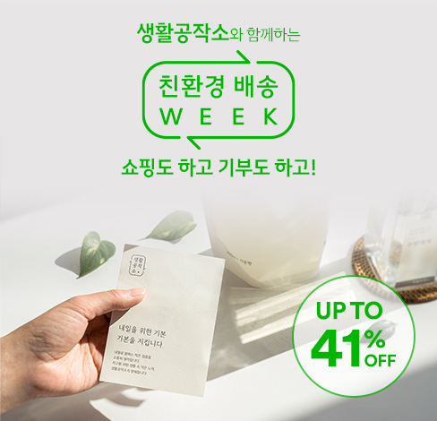 △생활용품 전문 브랜드 생활공작소가 1일부터 7일까지 진행되는 네이버쇼핑 '친환경 배송 위크'에 참여한다. 네이버쇼핑 친환경 배송 위크는 생활공작소를 비롯해 유한킴벌리, P&G, 대상웰라이프, 오설록 등 비닐, 테이프 대신 단가가 높더라도 종이 포장재를 활용해 탄소중립을 실천 중인 브랜드들이 모여 마련된 행사다. 행사기간 중 판매 금액의 1%는 대한적십자사 모금함을 통해 동해안 산불 피해 지역 복구를 위한 사업에 기부돼 친환경 가치 소비를 실천할 수 있다. 생활공작소는 이번 기획전을 통해 인기 친환경 제품 8종을 최대 41% 할인된 가격으로 선보인다. ▲폐플라스틱과 유리를 재활용한 PCR용기와 천연 수세미가 포함된 '주방세제 에코팩' ▲무표백 천연 펄프를 사용한 '페이셜 티슈'와 '뽑아쓰는 키친타올' ▲미국산 프리미엄 목화솜 100%로 만든 '뽑아쓰는 친환경 목화솜 행주' ▲이지필링 라벨링으로 분리배출이 용이한 '거품형 젖병세정제' ▲식물성 천연재료로 제조한 '친환경 설거지 비누' 등으로 구성됐다. 5일 오전 11시에는 친환경 쇼핑을 콘셉트로 한 네이버 쇼핑라이브도 진행한다. 라이브방송을 통해 구매 금액 당 할인 쿠폰 제공, 3만 원 이상 결제 시 에코팩 무료 증정 등 다양한 혜택을 제공할 예정이다.