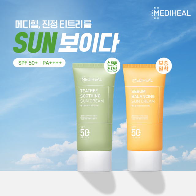 △글로벌 코스메틱 브랜드 메디힐이 신제품 '티트리 수딩 선크림'과 '세범 밸런싱 선크림'을 올리브영에 론칭하고 단독 한정 기획구성을 40% 할인가에 선보인다. '티트리 1등'으로 뜨거운 호응을 이끌어 온 메디힐은 순한 성분과 끈적임 없는 산뜻함으로 피부를 5중 보호하는 신제품 선크림 2종을 올리브영에 론칭하고 '티트리 클렌징폼 50mL'를 추가 증정하는 올리브영 단독 한정 기획구성 상품을 판매한다. 4월 1일부터 전국 올리브영 매장과 온라인몰에서 정상가 2만 5000원에서 약 40% 할인된 가격으로 만나볼 수 있다. 티트리 수딩 선크림은 메디힐 독점 개발 조성물인 티트리 카밍 바이옴 성분으로 민감한 피부에 산뜻한 진정을 선사하며 100% 무기자차 '세범 밸런싱 선크림'은 보송하게 마무리돼 피지를 케어하고 자연스럽게 피부 톤을 밝혀준다. 2종 모두 SPF 50+/PA++++ 자외선 차단 지수와 블루라이트 차단 효과 검증을 완료했고, 민감성 피부 사용 적합 테스트를 통해 피부 자극 지수 0.00 판정을 받았다. 산호초와 해양 생태계를 해치는 유해 성분을 제외해 '100% Reef-safe Ocean Friendly' 인증을 받았으며 콩기름 잉크와 FSC 인증 패키지가 적용돼 피부뿐 아니라 바다와 자연에 미칠 영향까지 고려한 '클린 뷰티' 제품이다.