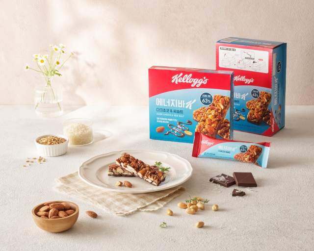 △농심켈로그는 진한 다크초코와 프리미엄 씨솔트로 건강한 '단짠' 조합을 완성시킨 '에너지바K 다크초코&씨솔트'를 출시했다. 다크초코와 씨솔트의 조합에 하루 에너지를 채워줄 풍부한 견과류까지 더해져 맛은 물론 건강까지 만족시킬 수 있는 제품이다. 쌉싸름하고 진한 다크초코와 고소한 견과류·곡류가 완벽한 조화를 이뤄 풍부하면서도 고급스러운 맛을 구현했다. 콕콕 박혀 있는 프리미엄 씨솔트는 단짠의 밸런스를 완성해 건강하면서도 색다른 단맛의 풍미를 극대화했다. 63%의 높은 견과류·곡류 함량이 특징이다. 통아몬드와 땅콩 등의 견과류(57.5%)와 통귀리와 쌀 등의 곡류(6%)가 어우러져 오독오독 씹는 재미를 느낄 수 있다. 입안 가득 느껴지는 고소함과 풍부한 영양으로 맛과 영양을 모두 놓치지 않았다. 1일부터 전국 대형마트와 온라인몰, 편의점 등에서 구매할 수 있다.
