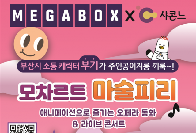 부산시 캐릭터 ‘부기’를 활용해 어린이 오페라 콘텐츠를 만든 (주)샤콘느가 메가박스와 MOU를 맺고 올 연말까지 월 1회 애니메이션 상영과 공연을 진행한다고 밝혔다. 매달 첫째 주 토요일마다 열리는 이번 공연은 미취학 아동과 초등학교 저학년을 대상으로 한다.