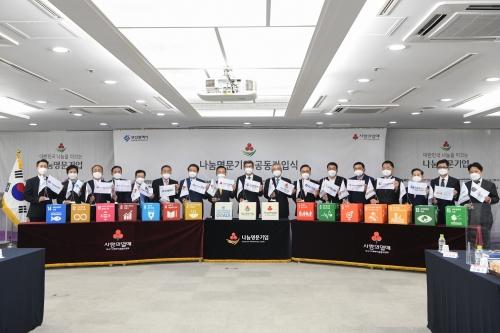 부산사랑의열매는 12일 부산시청 26층 회의실에서 ‘나눔명문기업’ 15개 기업 공동 가입식을 열었다.부산사랑의열매 고액 기업 기부자 모임인 ‘나눔명문기업’에 부산지역 기업 15곳이 동시에 가입하며 부산이 전국에서 나눔명문기업 최다 도시로 우뚝 섰다.