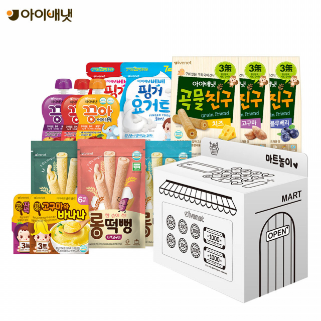 △영유아 식품 전문기업 아이배냇이 '어서오세요 마트놀이'를 출시했다. 아이가 뜯고 색칠하고 붙이는 활동을 통해 나만의 마트를 완성하며 상상력과 창의력 발달에 도움을 받을 수 있는 만능놀이세트다. 아이배냇이 처음으로 선보이는 놀이용품이다. 아이들은 △계산놀이 △스티커놀이 △색칠놀이 등 다양한 활동을 체험할 수 있다. 계산놀이에서는 마트놀이에 사용할 동전과 지폐, 동전투입구를 절취선을 따라 직접 뜯고 만들어 볼 수 있다. 동전을 직접 넣으며 재밌는 마트놀이가 가능하다. 스티커놀이에서는 아이배냇의 간식과 다양한 물건을 담은 사물 스티커를 아이가 스스로 고르고 떼서 붙여볼 수 있다. 스티커를 붙이며 제품을 직접 진열해보는 놀이가 가능하다. 색칠놀이에서는 아이들이 카트에 담고 싶은 물건을 직접 고르고 색칠하며 상상력을 자극받을 수 있다. 마트놀이 박스는 색연필로 색칠이 가능한 재질로 다양한 색감놀이가 가능하다. 박스는 아이의 이름을 써서 아이만의 소중한 마트 겸 간식창고로 활용할 수 있다. 간식, 장난감, 옷 등 다양한 물건을 담아둘 수 있다. 어서오세요 마트놀이는 놀이 본품과 사물 스티커 2매, 그리고 아이배냇 간식세트로 구성됐다. 간식세트는 롱떡뻥 3종(자색고구마, 단호박, 시금치), 핑거요거트 2종(플레인, 딸기), 곡물친구 3종(고구마, 치즈, 블루베리), 떠먹는 고구마 2종(바나나, 자색고구마푸룬), 끙아 3종(A, B, C)까지 인기 스테디셀러 제품들이 들어 있다.