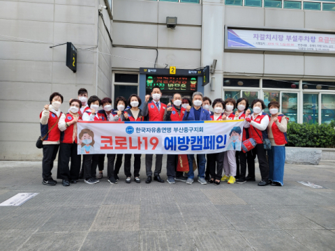 부산 한국자유총연맹 중구지회(회장 이희산)는 지난 4월 18일 회원 20여명과 함께 유동인구가 많은 자갈치신동아시장과 자갈치시장 일대에서 코로나19 예방 마스크 5천장 나눔 캠페인을 실시했다.