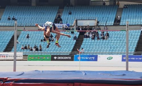 우상혁은 19일 대구스타디움에서 열린 제51회 전국종별육상선수권대회 남자 높이뛰기 일반부 결선에서 2m30을 넘어 우승을 차지했다. 이 대회는 올해 우상혁이 치른 첫 실외경기였다.