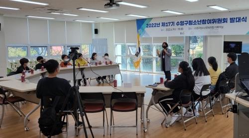 부산 수영구청(구청장 권한대행 이용주)은 최근 제17기 수영구청소년참여위원회의 발대식을 온라인과 오프라인에서 동시 개최했다.