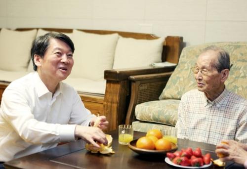 2017년 안철수 인수위원장과 안영모 옹이 담소를 나누는 모습. 부산일보 DB안철수 대통령직인수위원장(국민의당 대표)의 부친인 안영모(향년 92세) 옹이 19일 오후 2시께 별세했다. 안 위원장은 전날(18일) 국회에서 국민의힘과의 합당 선언을 한 후 부친이 위독하다며 곧장 부산으로 이동한 바 있다. 안 옹은 이날 자신이 입원 중이던 부산 해운대백병원 중환자실에서 숨을 거뒀다. 안 위원장 등 유가족이 안 옹의 임종을 지켜본 것으로 전해졌다. 안 옹은 지난 달 30일 중환자실에 입원한 뒤 치료를 받아오다 지난 18일부터 병세가 위독해진 것으로 알려졌다.