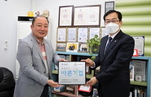 (주)미천환경(대표이사 김동수·왼쪽)은 14일 대한적십자사 부산지사(회장 서정의) ‘씀씀이가 바른기업’ 정기후원 캠페인에 참여했다. ‘씀씀이가 바른기업’은 위기 가정을 지원하기 위한 기업의 사회공헌 캠페인으로 매달 20만 원 이상의 정기후원으로 참여할 수 있다. 김상훈 기자