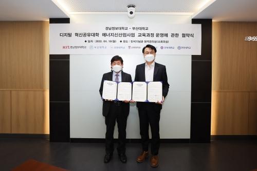경남정보대학교(총장 김대식) 에너지신산업 사업단(단장 허광선)은 18일 대학 소회의실에서 부산대 에너지신산업 사업단(단장 오진우)과 교육과정 운영에 관한 업무협약을 체결했다. 양 기관은 에너지신산업 인력 양성을 위해 △교육과정 공동 운영 △교과목 개발을 통한 공동 강의와 학생 공동 수강 △에너지 실험실·기자재 공동 활용 등을 협력할 예정이다. 임원철 선임기자
