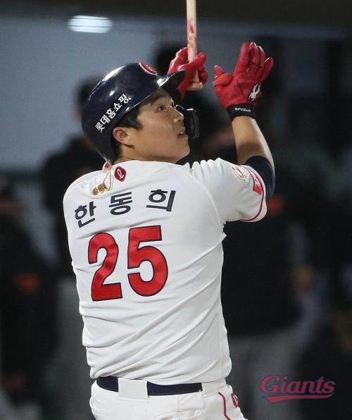 한동희는 19일 열린 한화 이글스와의 시즌 1차전에 3번 타자로 선발 출전해 시즌 4호, 1점 홈런을 터뜨렸다. 한동희는 4회말 한화 선발 투수 김민우가 던진 시속 140km 직구를 밀어 쳐 우측 담장을 훌쩍 넘기는 홈런을 만들어냈다. 한동희는 LG 트윈스 김현수와 함께 홈런 부문 공동 1위(4개)에 올랐다.