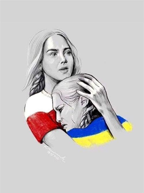 우리는 학급 출입문에 푸른색·노란색(우크라이나 국기 색) 하트 모양을 직접 걸어 두기로 결정했습니다. 우리 학급에서는 자주 폴란드와 우크라이나의 우의를 위해 이런 그림을 그립니다.