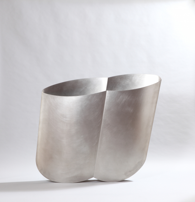 ‘Space-less’시리즈는 2008년부터 선보이기 시작했으며 기존의 평면작업에서 공간에 대한 문제로 확대하여 접근한 결과물이기도 하다. 조각을 떠난 조각 혹은 정신적인 영역으로 열어가는 조각으로, 작가만의 개념을 저변에 두고 예술적 정점을 향한 시도를 이어간다. 이 작품은 스테인리스 스틸의 색감과 재질을 그대로 드러내며 마치 원통을 두 개 접합시켜 압축시킨 형태로 평면처럼 보이는 착시적 입체 조각이다. 한편 2017년 수원시립아이파크미술관에서 개최된 전시가 김인겸의 생애 마지막 전시였다.