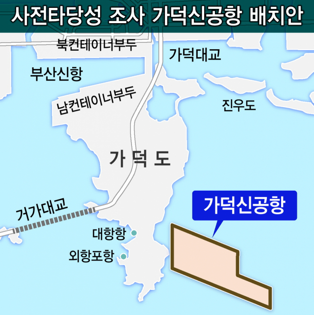 이에 동서방향 활주로 2개 중 E안이 최적이라고 선정했다. E안은 D안(가덕도에 활주로를 걸치는 안)과 사업비에 큰 차이가 없으면서 부등침하를 막을 수 있고 선박수로를 피할 수 있다는 점을 내세웠다. 이럴 경우, 총 사업비는 13조 7000억 원에 이르고, 이 가운데 해양매립에 6조 6000억 원이 드는 것으로 나왔다.