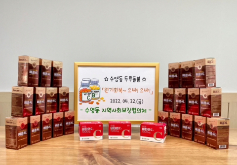 부산광역시 수영구 수영동 행정복지센터(동장 정은숙)은 22일 수영동 지역사회보장협의체(위원장 서진태) 주관으로 관내 기초생활수급자 중 코로나19 자가격리 해제자에게 말벗 드림과 영양제를 지원하는 '원기회복~ 으쌰! 으쌰!'사업을 추진한다고 밝혔다.
