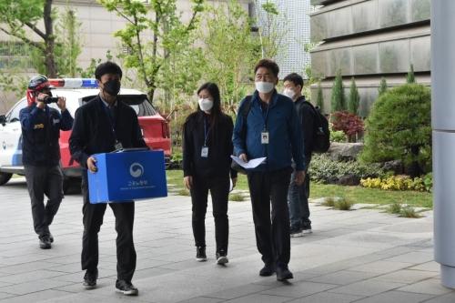 26일 부산지방고용노동청 관계자들이 지난 2일 노동자 사망 사고가 발생한 현대중공업 울산 본사를 압수수색하고 있다. 금속노조 현대중공업지부 제공고용노동부 부산지방고용노동청이 폭발 추정 사고로 협력업체 노동자가 사망한 사고와 관련해 현대중공업 울산 본사를 26일 압수수색했다.