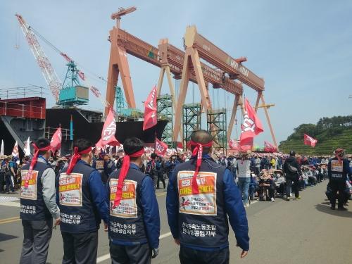 금속노조 현대중공업지부(현대중공업 노조)는 27일 오전 9시부터 7시간 동안 파업을 진행했다. 올해 들어 첫 파업이다. 노조는 또 28일부터 다음 달 4일까지 8시간 전면 파업을 예고하고 본격적인 파업 태세에 들어갈 계획이다.